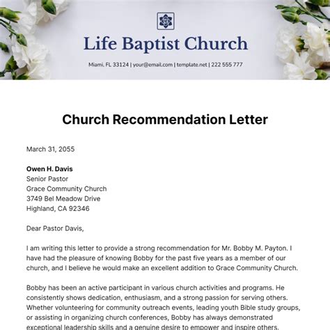 Download letter of recommendation church member sample rtf Library Genesis